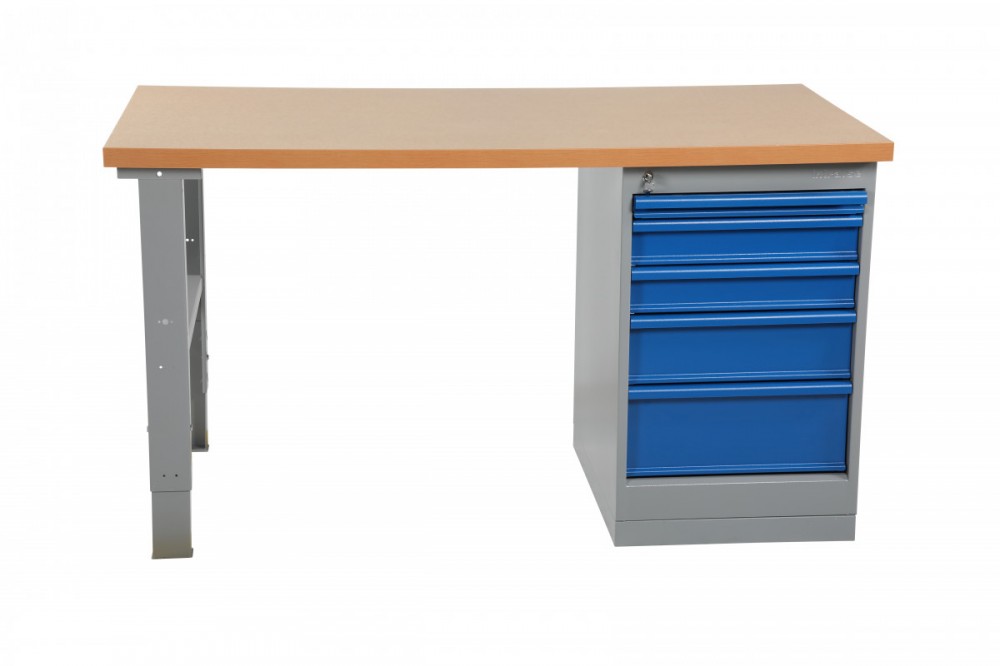Ipari kivitelű fiókos munkasztal emelt teherbírással, MDF asztallappal.
