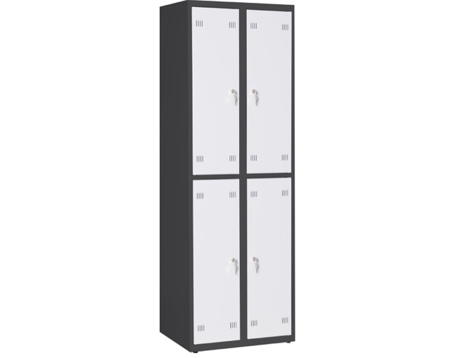 Öltözőszekrény 4 szekrény résszel, 850x254 mm méretű ajtókkal. A szekrények különböző méretű tárgyak tárolására alkalmasak.