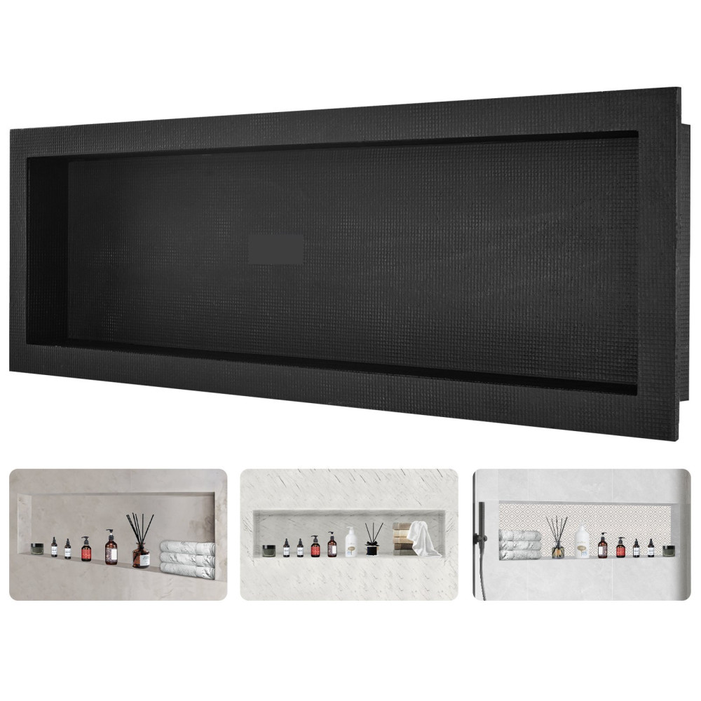 Lezárt és 100%-ban vízálló burkolandó fürdőszobai polc. A polc extrudált XPS hablemezből készült. Ez nemcsak a falat védi és meghosszabbítja a fal élettartamát, hanem hatékonyan megakadályozza a víz bejutását a falba, és a belső teret szárazon és higiénikusan tartja.