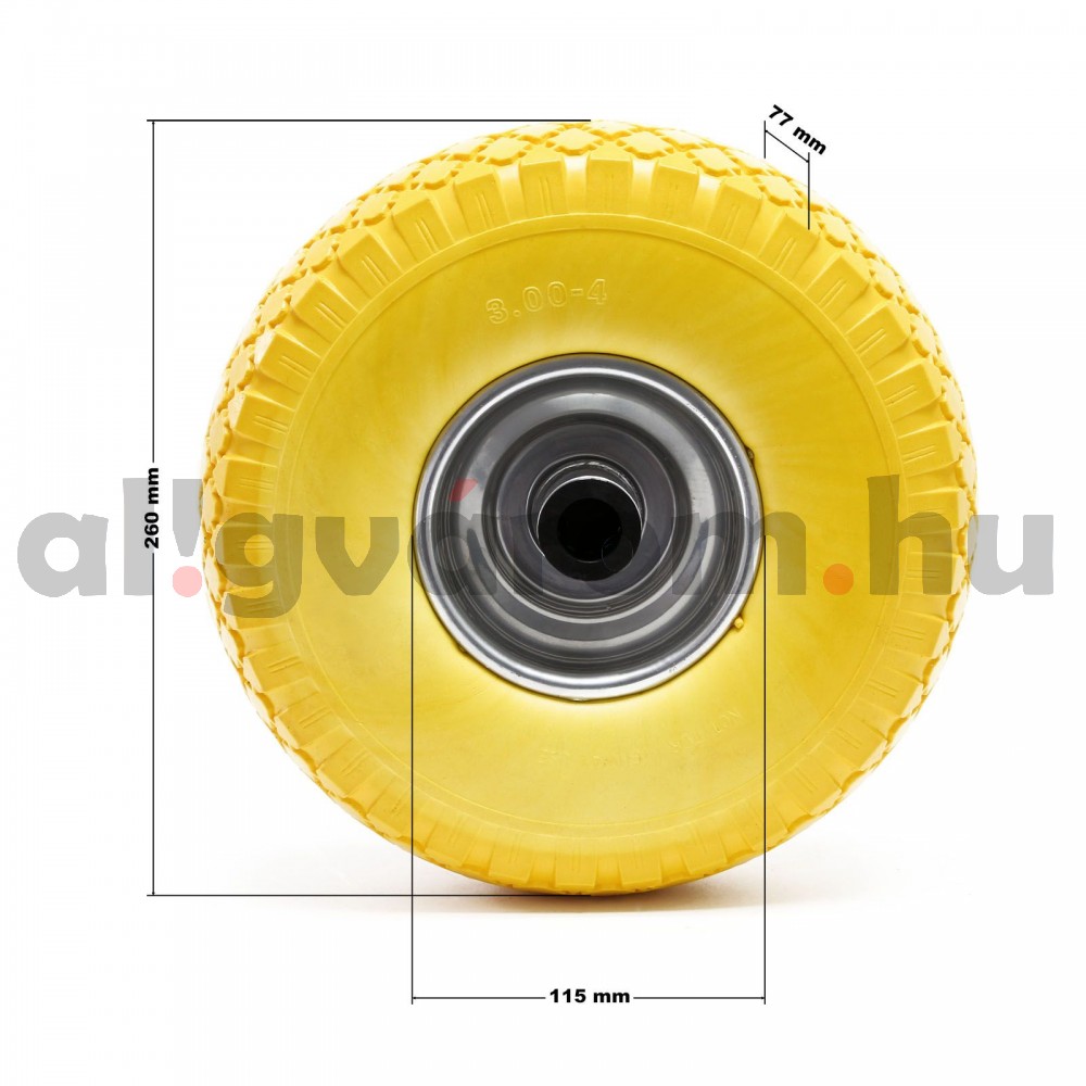 Ø 260 mm tömörgumi kerék 3.00-4 acél felnis tűgörgős defekttűrő pótkerék kézikocsi kiskocsi molnárkocsi