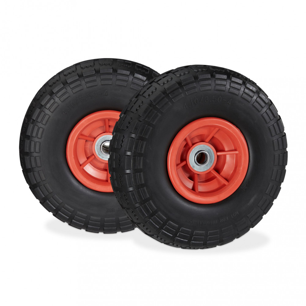 Ø260 mm tömörgumi kerék 2 db 4.1/3.5-4 defektmentes fekete-piros pótkerék műanyag felnivel kézikocsi kiskocsi molnárkocsi talicska