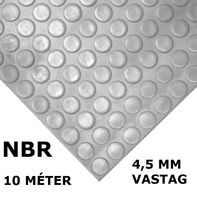 NBR pöttyös gumiszőnyeg 120 cm széles 10 méter hosszú 4,5 mm vastag szürke tekercs buborék metrómintás