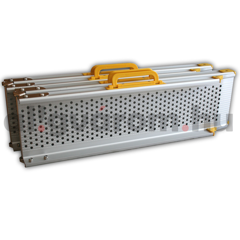 Ezek a rámpák ideálisak kerekesszékek rakodásához. Természetesen a rámpák számos más célra is használhatók. A rámpa különlegessége, hogy gyorsan összecsukható, és a kis súly miatt a rámpák bárhová magunkkal vihetőek. A rámpa sínje a lyukasztásoknak köszönhetően csúszásmentes.
