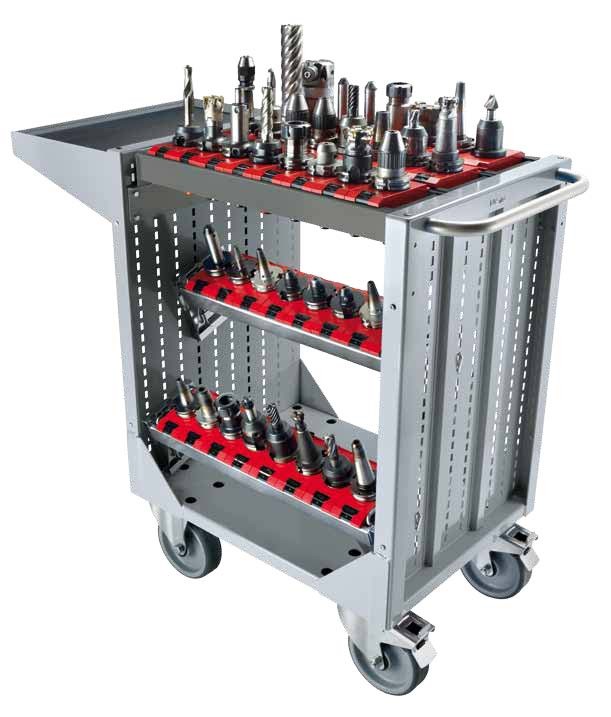 Az egyik kiemelkedő tulajdonsága ennek a szerszámtartó kocsinak a rendkívül praktikus szerszámtartó rendszer. A kocsi felszereltségében 30 db szerszámbefogó található, melyek az ISO-HSK63 szabványnak felelnek meg. Ezáltal biztos lehet abban, hogy szerszámai biztonságosan és rendezetten kerülnek tárolásra, lehetővé téve a könnyű hozzáférést és azonnali azonosítást.
