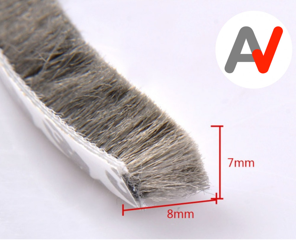 Öntapadós ajtószigetelő kefe, szélfogó üvegajtó kefe szürke 7x8 mm ajtókefe vitrin tömítés