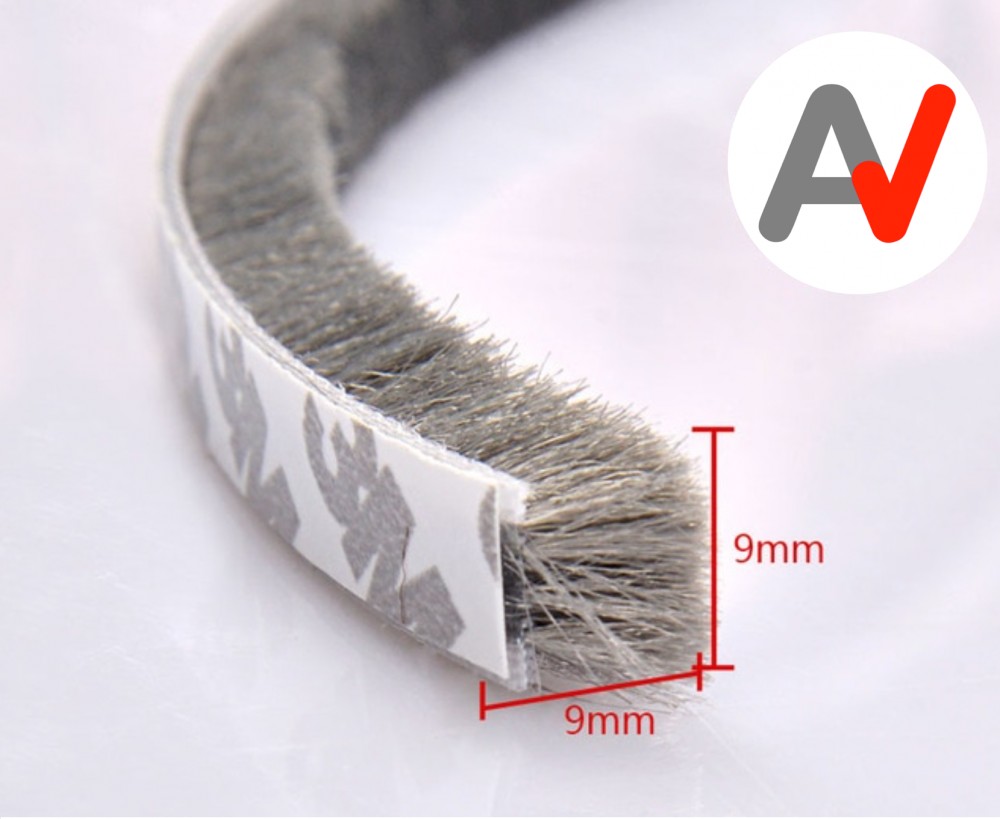 Öntapadós ajtószigetelő kefe, szélfogó üvegajtó kefe szürke 9x9 mm ajtókefe vitrin tömítés