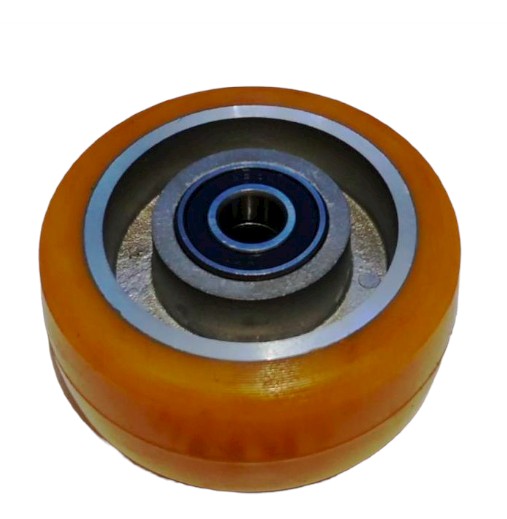 Támasztó, stabilizáló kerék targonca raklapemelő kerék uretan acél ház poliuretán futófelület, csapággyal.