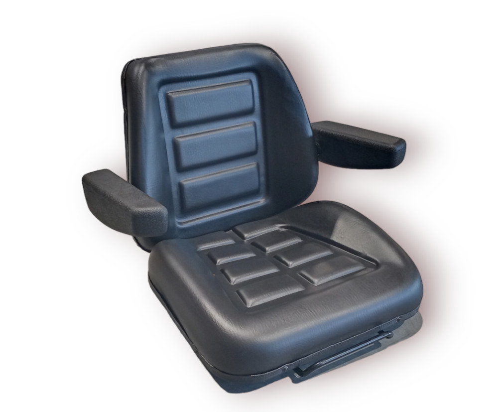 Kényelmes és strapabíró univerzális targoncaülés, karfával ellátva, mely mindkét oldalon felhajtható.