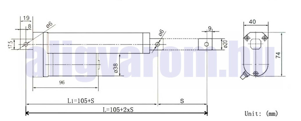 Tolómotor 700 mm löket 75 mm/s 100 N 10 kg terhelésig 12V ablaknyitó pozicionáló motor Lineáris aktuátor emelő szerkezet tolattyú