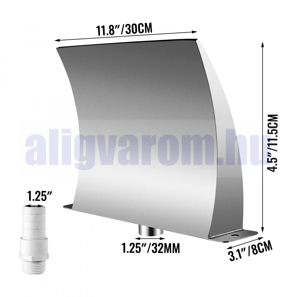 Szökőkút ívelt házi vízesés 11,5x30 cm rozsdamentes acél vízköpő medencéhez