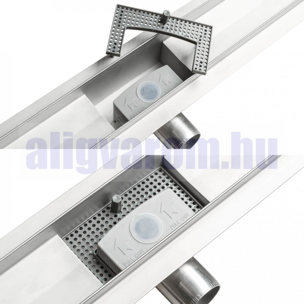 Univerzálisan felszerelhető minden burkolt zuhanyzóba. A zuhanycsatorna 1,2 mm vastag rozsdamentes acélból készült.