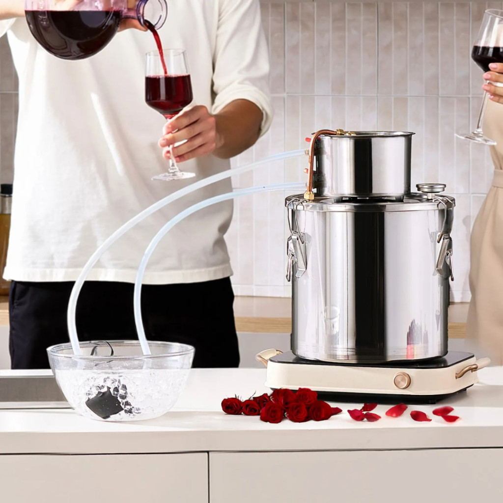 Fedezze fel a minőségi, otthoni lepárlás élményét ezzel a 19 literes, rozsdamentes acél alkohollepárló berendezéssel, amely ideális választás mind kezdők, mind rutinos házi párlatkészítők számára. A készülék élelmiszeripari minőségű rozsdamentes acélból, szilikonból és vörösrézből készült, így teljesen biztonságos a különböző italok és desztillált anyagok készítésére.