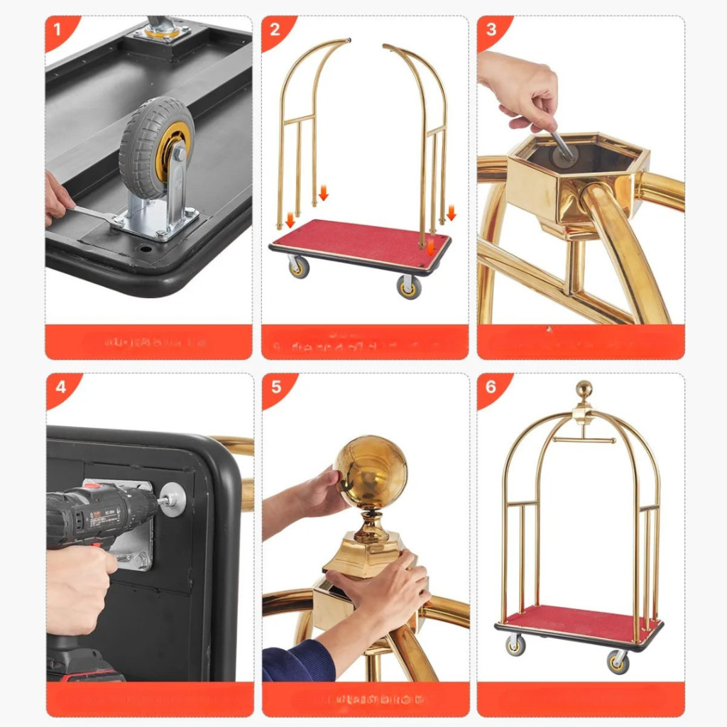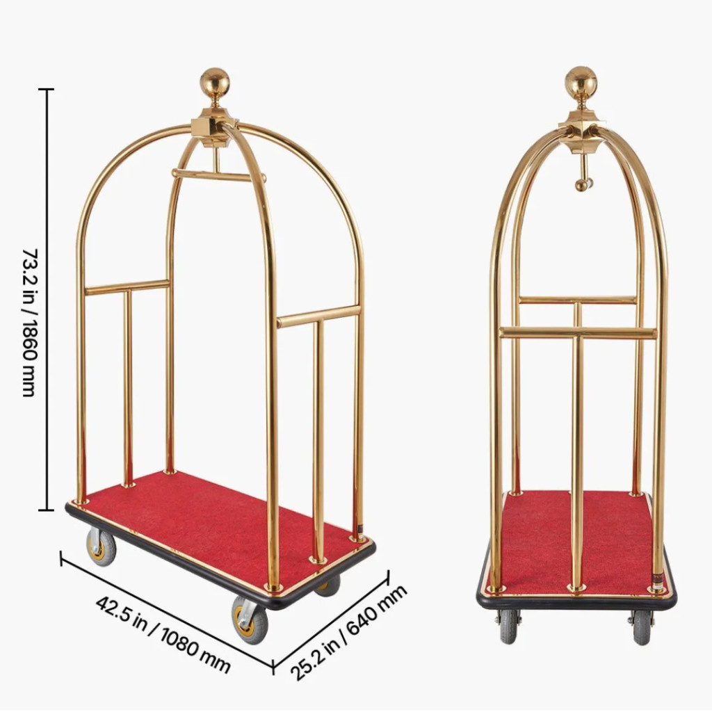 Szállodai csomagszállító kocsi 500 kg teherbírású poggyászkocsi 1080x640x1860mm arany
